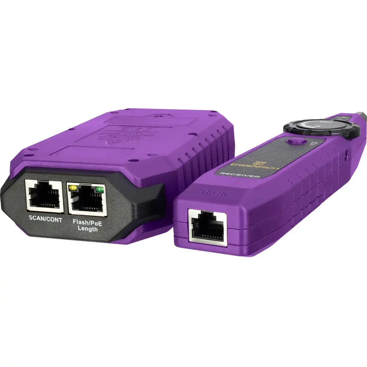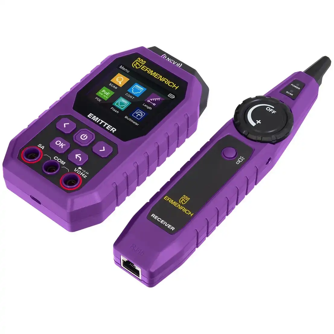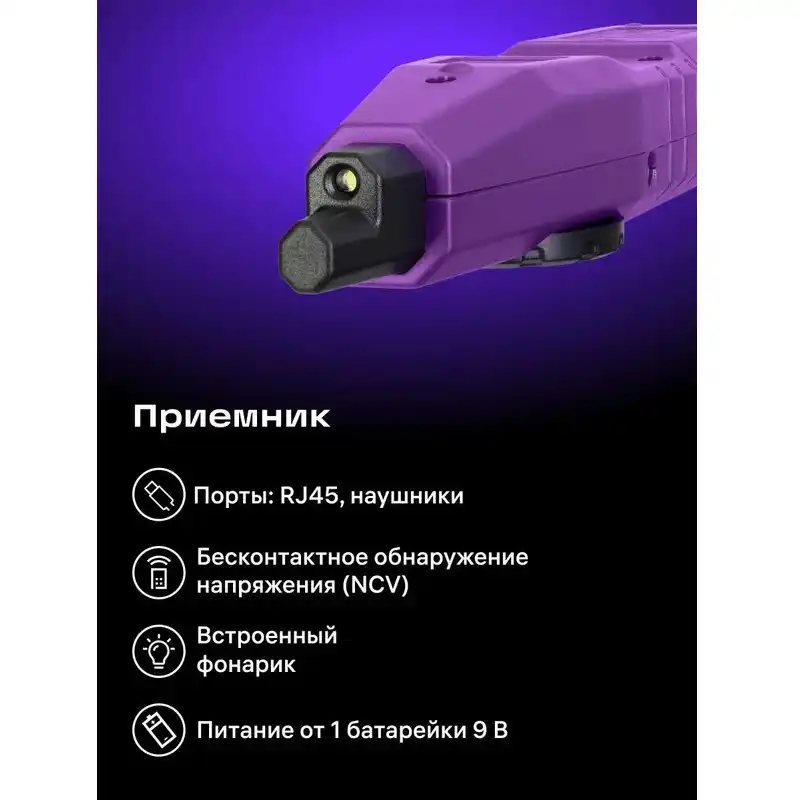 Кабельный тестер с мультиметром Ermenrich Ping SM75 – многофункциональный инструмент для определения состояния и всесторонней диагностики телефонных линий, компьютерных сетей и электрооборудования. Прибор предназначен для профессионалов, занимающихся монтажными работами и обслуживанием сетей в промышленных, офисных и домашних условиях. Тестер используется для поиска витой пары, трассировки, определения длины кабеля (до 200 метров, с погрешностью ±3 м), дистанции до короткого замыкания или обрыва. Ermenrich Ping SM75 отличается от аналогичных приборов широким спектром функций. Он позволяет провести тест PoE c определением типа питающего оборудования по стандарту IEEE 802.3af/at, имеет функции NCV (бесконтактное определение опасного напряжения) и Port Flash, подходит для тестирования сетевых кабелей STP/UTP категорий 5E/6/6A. Также заменяет собой цифровой мультиметр, измеряя напряжение (постоянное и переменное), ток (постоянный и переменный), сопротивление, частоту и емкость. Результаты измерений отображаются на цветном TFT-экране передатчика с разрешением 320х240 пикс. В комплект поставки входят передатчик, приемник с разъемом для подключения наушников (входят в комплект) и портом RJ45, тестовые щупы для мультиметра. Работа передатчика осуществляется от встроенного аккумулятора 3,7 В (адаптер для зарядки приобретается отдельно), а приемник питается от одной батарейки 9 В. Основные особенности: Измерение длины кабеля до 200 метров, с погрешностью не более 3 метров Диапазон трассировки – от 0 до 1000 метров Функции NCV, Port Flash, тест PoE, определение полярности Мультиметр: вольтметр, амперметр, омметр, измеритель емкости, частотомер Быстрое определение расстояния до обрыва, короткого замыкания или перекрещенных пар Яркий цветной TFT-дисплей для отображения результатов тестирования сети Комплектация: Передатчик Приемник Наушники Щуп – 2 шт. Кабель USB Type-C Сумка Инструкция по эксплуатации и гарантийный талон