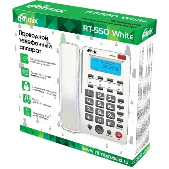 Этот проводной телефон станет надежным и функциональным дополнением вашего дома или офиса. Ritmix RT-550 в элегантном белом корпусе — это гораздо больше, чем просто средство связи. Это ваш персональный помощник, который сочетает в себе проверенную временем надежность проводной связи с современными и крайне полезными функциями для максимального комфорта. С первого взгляда Ritmix RT-550 привлекает своим лаконичным и эргономичным дизайном. Компактный и стильный, он органично впишется в любой интерьер, от классической гостиной до современного рабочего кабинета. Благодаря возможности настенного крепления вы можете легко разместить его в удобном месте, будь то кухня, прихожая или офисная переговорная зона, освободив ценное пространство на столе. Одной из ключевых особенностей этой модели является встроенный дисплей с функцией АОН (Автоматического Определителя Номера) и Caller ID. Вы всегда будете знать, кто вам звонит, еще до того, как снимете трубку. Это позволяет Prioritize звонки и решить, важно ли ответить немедленно или перезвонить позже. Более того, телефонная книга устройства способна хранить до 99 номеров, что избавляет от необходимости искать контакты в записной книжке или на смартфоне. Общение становится невероятно удобным благодаря функции громкой связи. Вы можете вести беседу, не держа трубку в руке, что незаменимо во время приготовления ужина, поиска документов или совещания с коллегами. Качество звука остается четким и разборчивым с обеих сторон. Для тех, кто ценит полную конфиденциальность или предпочитает говорить без помех, предусмотрен разъем для подключения проводной гарнитуры. Ritmix RT-550 — это умное устройство с функциями персонального органайзера. Встроенные часы, календарь и будильник помогут вам всегда оставаться в рамках расписания. Вы больше не проспите важную встречу, а яркий дисплей будет постоянно информировать вас о текущем времени и дате. Тональный и ускоренный набор экономят ваше время, а память на 99 последних набранных номеров позволяет быстро перезвонить, если соединение прервалось. Важным преимуществом является двойное питание: от стандартной телефонной линии и от трех батареек типа АА. Это гарантирует бесперебойную работу всех функций, особенно будильника и определителя номера, даже в случае отключения электроэнергии. Вы можете быть уверены, что никогда не пропустите важный звонок и всегда проснетесь вовремя. Ritmix RT-550 White — это разумный выбор для тех, кто ценит надежность, удобство и многофункциональность. Это идеальное решение для дома, где есть пожилые люди, которые предпочитают простоту использования, и для малого бизнеса, где важна каждая деталь. Обретите уверенность и комфорт связи с этим современным проводным телефоном.